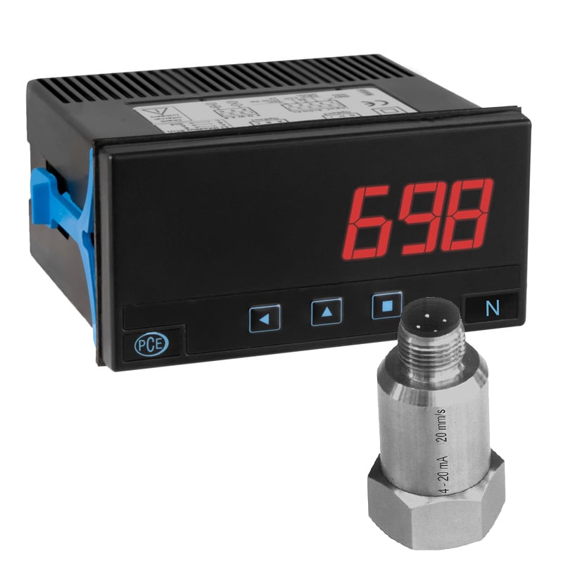 A rezgésmérő konfigurálható váltó- és egyenfeszültségmérőként (600 VAC / DC-ig), váltó- és egyenáramú árammérőként (5 AAC / DC-ig). A rezgésmérő a folyamatjelek (mA, VDC), termoelemek, rezisztív hőmérséklet-érzékelők (Pt, Ni, PTC és NTC), ellenállások, potenciométerek és frekvencia mért értékeit is megjeleníti. A rezgésmérő készülék az elülső gombok segítségével konfigurálható. A beépített kijelző a 96 x 48 mm-es (1/8 DIN) szabványos méretű panelkivágásba van beépítve. A mért érték 4 számjeggyel skálázható (9999 / -1999). A rezgésmérő eszközön a riasztási beállítási pontokhoz való gyors hozzáférés funkció, külső vezérlés az előre meghatározott funkciók aktiválásához, öko üzemmód az alacsony fogyasztáshoz, választható kettős skálázás, 5 konfigurálható fényerősségszint is rendelkezésre áll. Egyetlen univerzális tápegység 18 ... 265 V AC / DC teszi a beépített kijelzőt könnyen kezelhető folyamatmérő eszközzé. A rezgésmérő készülék felhasználója számára opcionális kimeneti és vezérlő modulok (relé, analóg kimenet, Modbus RTU) állnak rendelkezésre. A külső rezgésérzékelő a gépek és rendszerek rezgési sebességének mérésére szolgál. A rezgésérzékelő a mért értéket 4 ... 20 mA-es szabványos jelet továbbít a későbbi vezérlő- és szabályozástechnika számára. Ez azt jelenti, hogy a rezgésérzékelő teljes jelfeldolgozásra használható a rezgéserősség méréséhez. A rezgésmérő eszköz a DIN/ISO 10816 szerinti mérésekhez használható. A 4 ... 20 mA jel a rezgéssebesség effektív értékét tükrözi. A mérési tartomány 0,2 ... 20 mm/s. A frekvenciatartomány 10 ... 1000 Hz. A gyorsulásmérő áramhurokon keresztül kapja a tápellátást, és teljesen galvanikusan el van szigetelve. A rezgésmérő készülék polaritásfordítás ellen védett. Az érzékelő egy M12-es kábelcsatlakozáson keresztül csatlakozik a PLC-hez. Annak érdekében, hogy a rezgésmérő eszköz zord környezetben is használható legyen, IP67-es védettséggel rendelkezik. Jellemzők: IP 65 az elülső oldalon Különböző egységek lehetségesek Digitális kijelző az ipari folyamatokhoz Választható kimenetek 4 számjegyű digitális kijelző Számos érzékelő csatlakoztatható Frekvencia: 10 ... 1000 Hz Mérési tartomány: 0,2 ... 20 mm/s (RMS) Csatlakoztatás: 713-as kötőelem Kimenet: 4 ... 20 mAMűszaki adatok: Rezgés Mérési tartomány 0,2 ... 20 mm/s Felbontás 0,01 mm/s Pontosság 3 % v.Mw. Érzékelő Megjelölés KSI84VR-10-1k-20 Frekvencia 10 ... 1000 Hz Kimenet 4 ... 20 mA RMS Hőmérséklet-tartomány -40 ... 100 °C További leírás Elektromos csatlakozás: Binder 713 M12 karimás aljzat, mechanikus csatlakozás: M8 menet az alján. Védelmi osztály IP68 Általános műszaki adatok Bemenetek Pt100 2-vezetékes, Pt100 3-vezetékes, Pt500, Pt1000, Ni100, Ni200, Ni1000, hőelem K, hőelem J, hőelem E, hőelem N, hőelem R, hőelem S, hőelem B, hőelem T, hőelem C, hőelem L, áram, feszültség, ellenállás, 4 ... 20 mA, 0 ... 10 VDC Bemenet (további információk) további tartományok lásd a használati utasítást. Kimenetek Relé Kijelző típusa 7 szegmens kijelző Kijelző mérete 4 számjegy A menü nyelve angol (GB), angol (US) Védelmi osztály (készülék) IP65 Védelmi osztály (kiegészítő információk) Előlap IP65 / érzékelő IP68 Tápegység Kijelző PCE-DPD-U 18 ... 265 V AC/DC,rezgésérzékelő 10 ... 30 V DC Üzemi feltételek 0 ... 55 °C , 0 ... 85 % r. H. Tárolási körülmények -20 ... 70 °C , 0 ... 85 % r. H. Méretek ( H x B x H ) 96 x 48 x 91 mm Tömeg 150 gSzállítási tartalom: 1 x PCE-VMS 100 rezgésmérő készülék 1 x PCE-AC420-210 rezgésátalakító 1 x PCE-AC420-M12-PIG5 5 méteres, 4 huzalos kábel 2 x terminál a kijelzőhöz 1 x PCE-AC420-ADH_PAD Rozsdamentes acél ragasztóbetét 1 x PCE-AC420-MAG_PAD mágneses tartó 1 x PCE-AC420-M12 csatlakozó M12 csavaros csatlakozókkal Ø 4 ... 6 mm-es kábelhez 1 x használati utasításFigyelem! A fenti gépi fordításban hibák, elírások előfordulhatnak, megértésüket köszönjük.