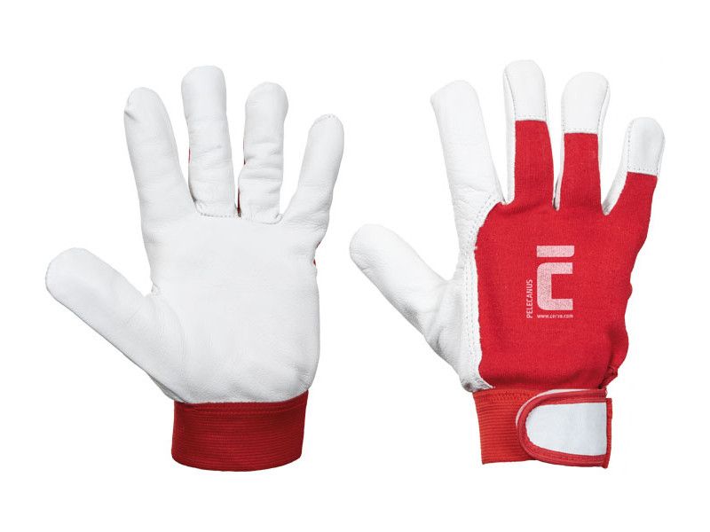 • varrott védőkesztyű finom kecskebőr tenyérrel, pamut szövet kézfejjel • bőr körmvédő • rugalmas, tépőzáras mandzsetta
