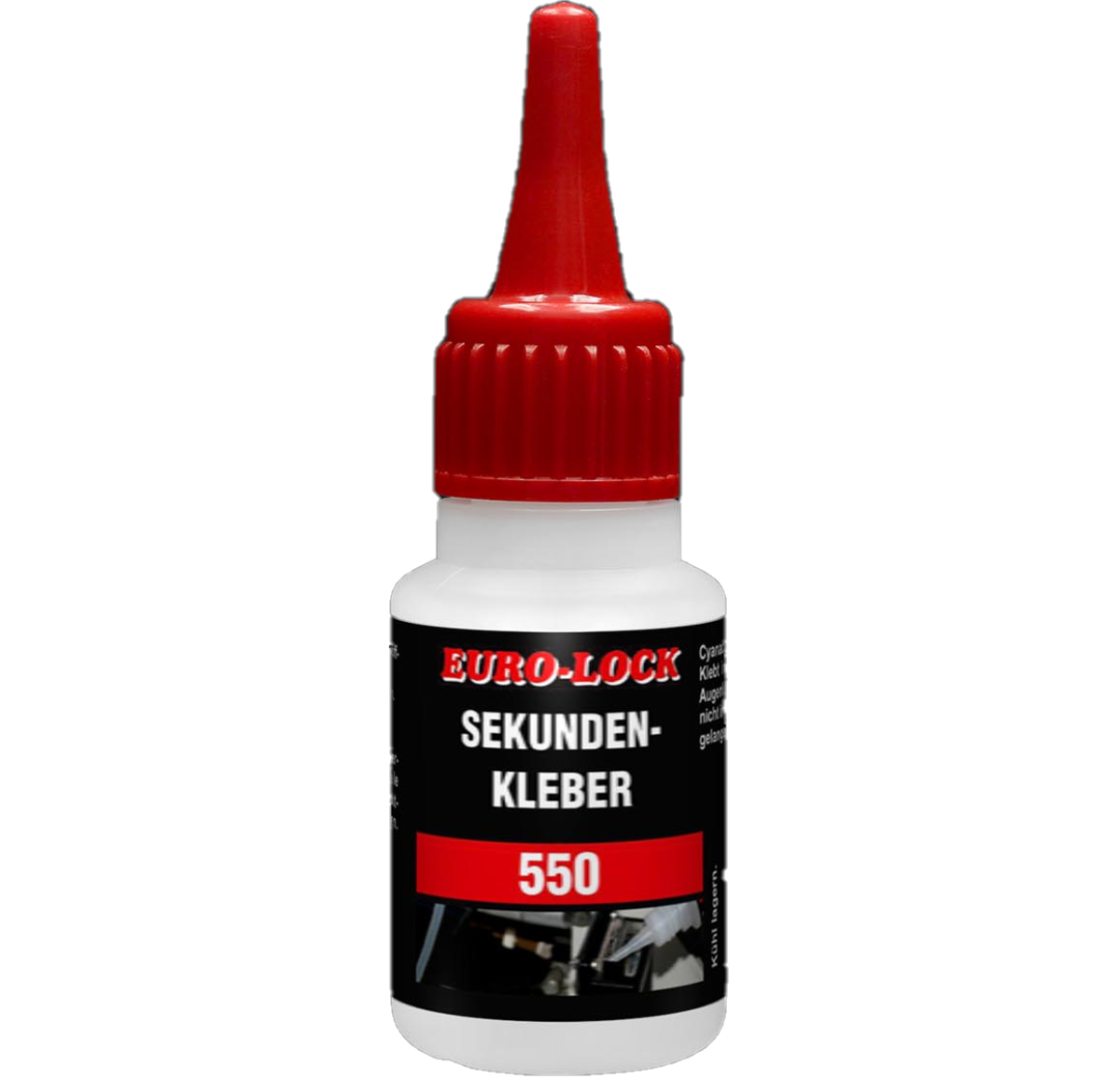 Az E 550 az ideális cianakrilát ragasztó gumi és műanyag kombinációkhoz.Tulajdonságok:Formája: színtelen folyadékKémiai alapanyag: etil-cianakrilátRagasztási hézag: porózus anyagok: 0,1 mm-ig, nem porózus anyagok: 0,25 mm-ig.Szavatossági idő: +10°-tól max. +22°C-ig 6 hónap, +2°-tól +10°C-ig 12 hónap.Fajlagos sűrűség (25°C): 1,05 g/lViszkozitás (25°C): 1000-2000 mPasVégső kikeményedés: 12 óra!Keményedési idő:Végső kikeményedés: 12 óra!Balsa: 10 sec.Nitril: 7 mp.Neoprén: 7 sec.EPDM: 7 mp.Acél: 25-40 mp.Polikarbonát: 15-25 sec.ABS: 1-2 mp.Nyírószilárdság:Acél: 15 N/mm²Alumínium: 10 N/mm²Nitrilgumi: 10 N/mm²Polikarbonát: 6 N/mm²ABS: 6-10 N/mm²Szakítószilárdság:EPDM: 5 N/mm²Nitril gumi: 5 N/mm²Neoprén gumi: 2,5 N/mm²Alkalmazás:A cianakrillát ragasztókat cseppenként kell alkalmazni cseppentős flakonból vagy adagolóból. A felhordás után a ragasztandó felületet enyhe érintkezési nyomás alatt illessze össze. A ragasztó polimerizációja néhány másodperc múlva megkezdődik, és a munkadarabok azonnal megmunkálhatók.Az optimális környezeti hőmérséklet aragasztáshoz +20° és +25° C és 50-60% relatív páratartalom között van.Nagy hidegben a kikeményedés sebessége nagyon lassú lehet. A HPDE tartályok nem képeznek teljes gátat. A terméket más vegyszerektől és nedvességforrásoktól távol kell tárolni.Erős fénynek való kitettség kifehérítheti a termékeket!A ragasztási felületek előkészítéseA felületeket meg kell tisztítani az olajtól, zsírtól és szennyeződésektől, javasoljuk aLos 2000ipari tisztító használatát!