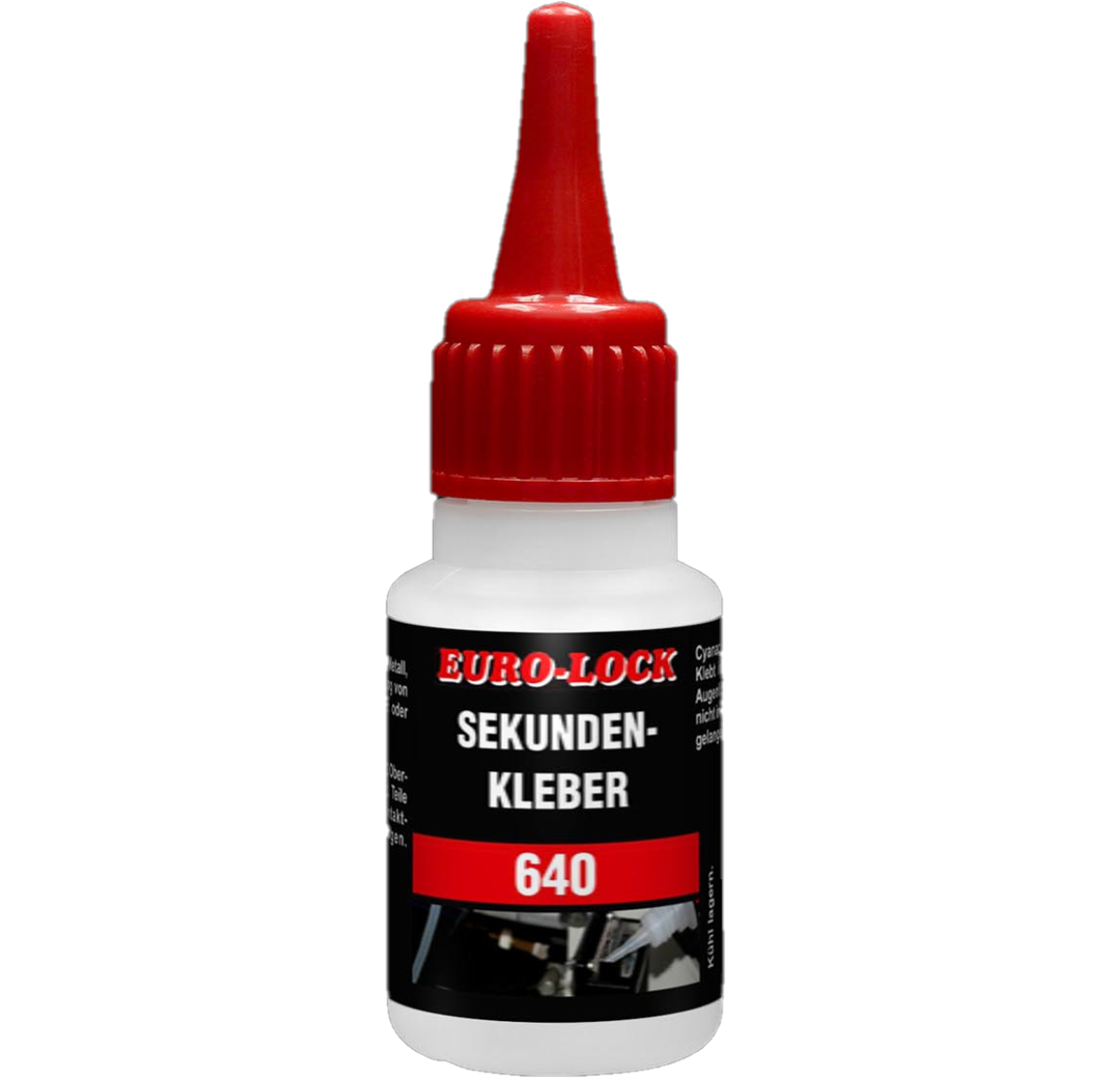 Az E 640 egy cianakrilát ragasztó, leginkább műanyaghoz, fémhez, gumihoz és játékokhoz,ékszerek és dísztárgyakhoz. Tulajdonságok:Kialakulási forma: színtelen folyadékKémiai alap: etil-cianoakrilátHézagkitöltés: porózus anyagok: kb. 0,25 mm, nem porózus anyagok: kb. 0,1 mm.Szavatossági idő: 6 hónap szobahőmérsékleten, 12 hónap +2°C - +10°C-on.Fajlagos sűrűség (25°C): 1,05 g/lViszkozitás (25°C): 80-120 mPasVégső kikeményedés: 12 óra. Ragasztási sebesség:EPDM: 7 sec.Neoprén: 7 mp.Nitril gumi: 7 mp.Balsa: 10 sec.ABS: 15-20 sec.Polikarbonát: 60 sec.Acél: 25-40 sec. Nyírószilárdság:Acél: 15 N/mmAlumínium: 10 N/mmNitril gumi: 10 N/mmPolikarbonát: 6 N/mmABS: 6-10 N/mm Szakítószilárdság:EPDM: 2,5 N/mm².Neoprén: 5 N/mm²Nitrilgumi: 5 N/mm² AlkalmazásA cianakrillát ragasztókat cseppenként kell alkalmazni cseppentős flakonból vagy adagolóból. A felhordás után a ragasztandó felületet enyhe érintkezési nyomás alatt illessze össze.A ragasztó polimerizációja néhány másodperc múlva megkezdődik, és a munkadarabok azonnal megmunkálhatók.Az optimális környezeti hőmérsékleta ragasztáshoz +20° és +25°C között van, 50-60% relatív páratartalom mellett.Nagy hidegben a kikeményedés sebessége nagyon lassú lehet. A HPDE tartályok nem biztosítanak teljes zárást. A terméket más vegyszerektől és nedvességforrásoktól távol kell tárolni.Erős fénynek való kitettség kifehérítheti a termékeket! A felületeket meg kell tisztítani az olajtól, zsírtól és szennyeződésektől, javasoljuk aLos 2000ipari tisztító használatát!