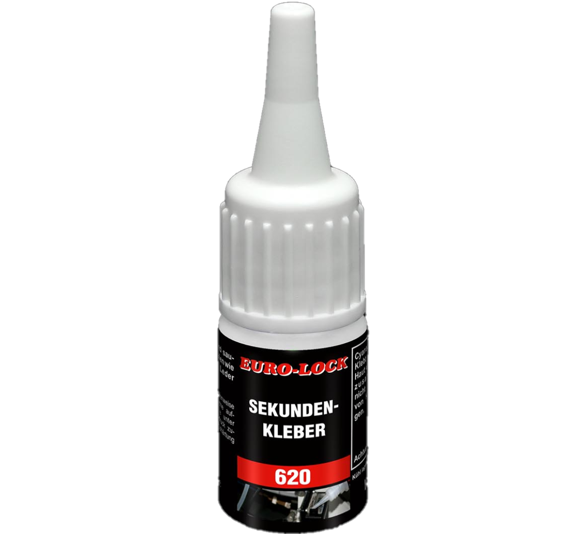 Az E 620 egy cianakrilát ragasztó porózus és nedvszívó anyagokhoz, például fához, parafához, bőrhöz és műanyaghoz. Tulajdonságok:Formája: színtelen folyadékKémiai alapanyag: etil-cianoakrilátHézagkitöltés: 0,25 mm-igSzavatossági idő: 6 hónap szobahőmérsékleten, 12 hónap +2°C - +10°C-on.Fajlagos sűrűség (25°C): 1,05 g/lViszkozitás (25°C): 80-120 mPasVégső kikeményedés: 12 óra! Ragasztási sebesség:EPDM: 5 sec.Neoprén: 5 mp.Nitril gumi: 5 mp.Balsa: 3 sec.ABS: 15-20 sec.Polikarbonát: 15-40 sec.Acél: 15-30 sec. Nyírószilárdság:Acél: 15 N/mm²Alumínium: 10 N/mm²Nitrilgumi: 10 N/mm²Polikarbonát: 6 N/mm²ABS: 6-10 N/mm² Szakítószilárdság:EPDM: 2,5 N/mm² Nitril gumi: 10 N/mm²Nitrilgumi: 5 N/mm²Neoprén gumi: 5 N/mm² AlkalmazásA cianakrilát ragasztókat cseppenként kell alkalmazni cseppentős flakonból vagy adagolóból. A felhordás után a ragasztandó felületet enyhe érintkezési nyomás alatt illessze össze.A ragasztó polimerizációja néhány másodperc múlva megkezdődik, és a munkadarabok azonnal megmunkálhatók. Az optimális környezeti hőmérséklet aragasztáshoz +20° és +25°C között van, 50-60% relatív páratartalom mellett.Nagy hidegben a kikeményedés sebessége nagyon lassú lehet. A HPDE tartályok nem biztosítanak teljes zárást. A terméket más vegyszerektől és nedvességforrásoktól távol kell tárolni.Erős fénynek való kitettség kifehérítheti a termékeket! A megfelelő ragasztás előfeltétele a tiszta felület.A felületeket meg kell tisztítani az olajtól, zsírtól és szennyeződésektől.