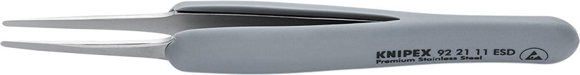 Precíziós csipesz, egyenes INOX, ESD, gumi nyél 123 mm, hegyes, 2A.SA.DRG