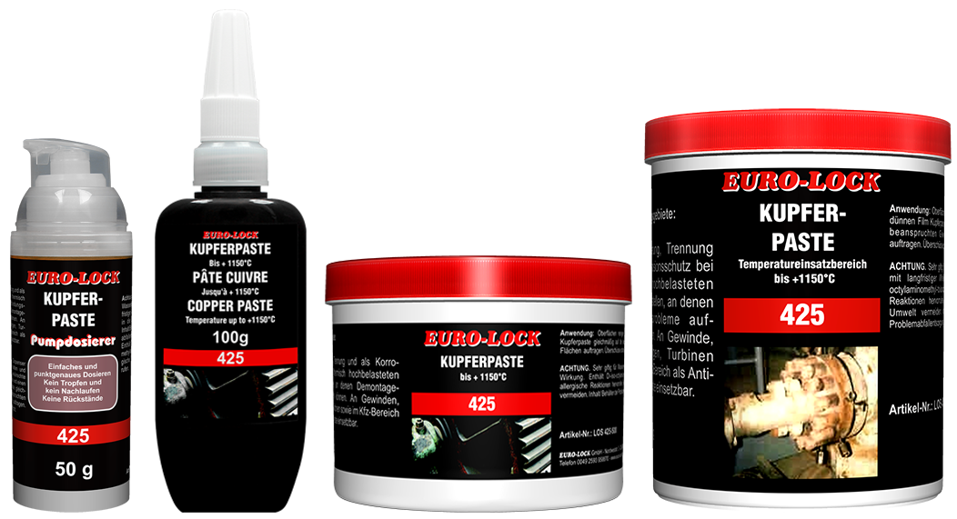 A LOS 425 csavarkötések és mindenféle csúszófelület szerelési kenésére használható.Magas hőmérsékleten és korrozív hatások esetén is megbízhatóan megakadályozza az égést és a rozsdásodást.A termékben található réz nem támadja meg afelületeket. Tulajdonságok:nagyon jó hőelvezetésnagyon alacsony súrlódási együtthatórendkívül tapadósvíz- és korrózióállónagyon jó elválasztó és kenőhatástömítő hatású a korrozív gázokkal és folyadékokkal szemben.elektromosan vezető Alkalmazás:Tisztítsa meg a felületet mindenféle maradványtól (oxid-, festék- és vízkőrétegektől, régi kenőanyagoktól), legjobb mechanikusan (drótkefével) vagy LOS 2000 speciális permetező tisztítószerrel.Vékonyrétegben kenje fel az igénybevett meneteken és felületeken, a teljes felületen egyenletesen kell alkalmazni.A magas hőmérséklet gyakori újrakenést igényel, de kerülni kell a felesleges kenést. Műszaki adatok:Megjelenés: rézszínű pasztaAlapolaj: ásványi olajFém pigment: rézKonzisztenciaosztály: 1.5 NLGI DIN 5181818Csepppont: nincs DIN ISO 2176Lobbanáspont: 220°C DIN ISO 2592Viszkozitás alapolaj 40°C-on: 110 mm2/s ASTM D 7042-04Vízzel szembeni viselkedés: 1-90 DIN 51807 1. részHőmérséklet alkalmazási tartomány: + 1150°C-ig
