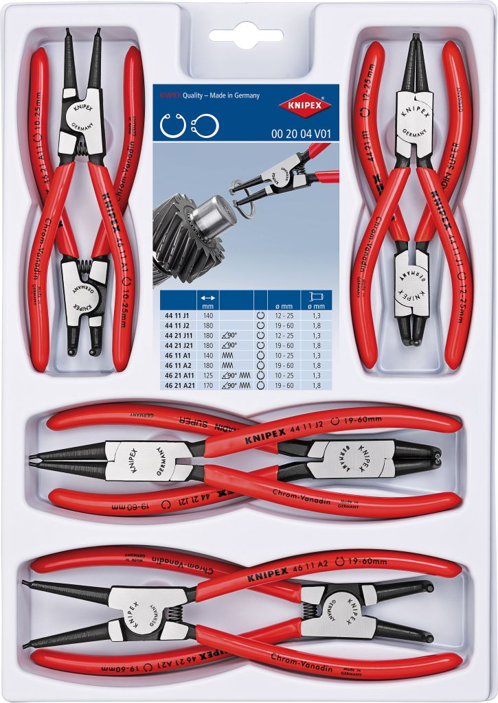 Seegergyűrű fogó készlet K-BE, műanyag dobozban 8 részes,J1-J21/A1-A21, 12-60mm