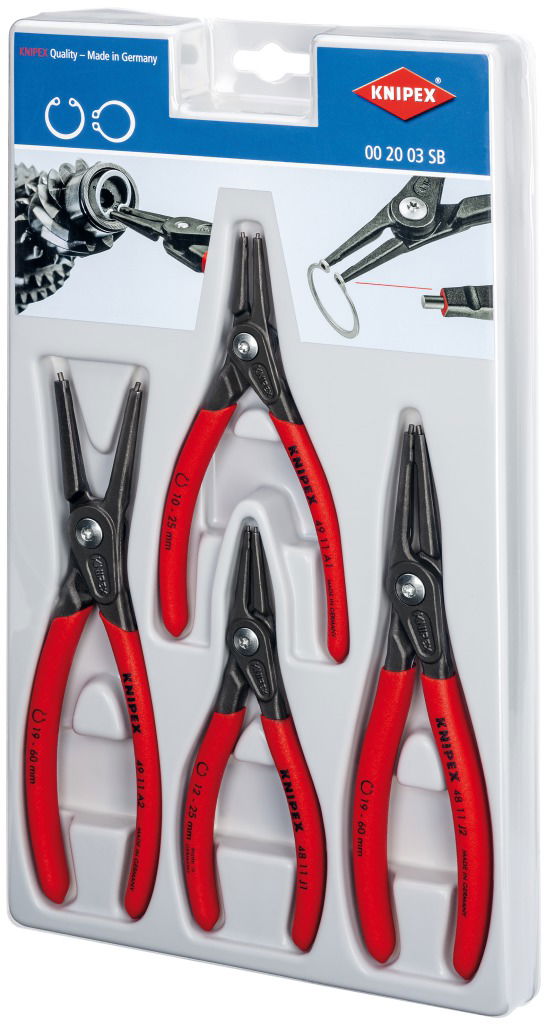 Seegergyűrű fogó klt. prec. K-BE, műanyag dobozban 4 részes,J1-J2/A1-A2, 10-60mm