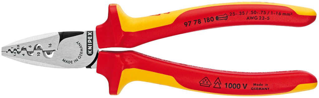 Szigetelt krimpelő fogó, kétkomponensű nyél 0,25-16,0 AWG23-5, 1000V, érvéghüvelyhez