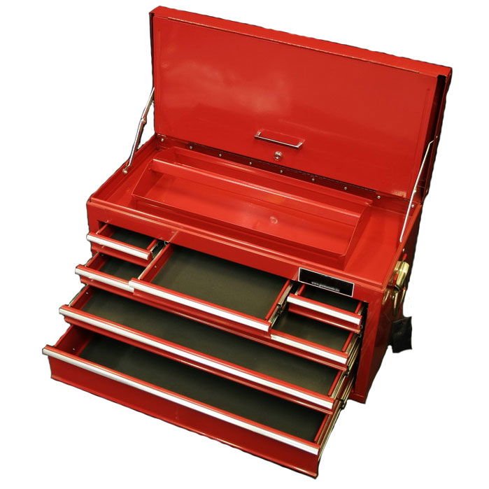 - 6 fiókos piros színű profi szerszámos szekrény (felső rész).