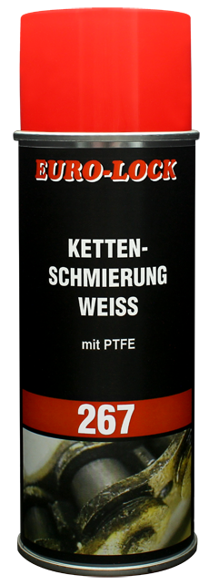 A LOS 267-et minden típusú lánc és motorkerékpárlánc kenésére használják.Rendkívül rugalmas, kivételes tapadással, jó kúszó tulajdonságokkal és nagy behatolási mélységgel rendelkezik, optimális kopás- és korrózióvédelmet nyújt,hőmérséklet- és vízálló. Hőmérséklet-tartomány: -30°C-tól +120°C-ig. Alkalmazás:Tisztítsa meg a láncot. Használat előtt jól rázza fel a kannát, és felhordáskor tartsa függőlegesen.Egyenletesen fújja fel. A szálfeszesség és a tapadási hatás kb. 20 perc elteltével érhető el. Műszaki adatok:Formája: AeroszolMegjelenés: FehérSzag: JellegzetesSűrűség (20°C): 0,70 g/mlGőznyomás (bar): 3,5 bar (20°C), 7,0 bar (50°C)Robbanási határértékek: alsó: 0,6 térfogatszázalék, felső: n.e.Gyulladási hőmérséklet: 250°CCsepppont: 250 (DIN ISO 2176)Telítődés: 220-250 (DIN ISO 2137)Ökológia: Vízveszélyességi osztály (WGK) 2 (önbesorolás)Tartály: 400 ml-es szórófejes doboz / 15 darabos doboz Kémiai összetétel: Zsírok, PTFE és szerves oldószer alapú kenőanyag,szerves oldószerek