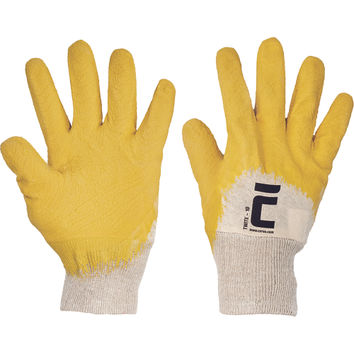• pamutkelméből varrt, félig természetes latexbe mártott kesztyű • csúszásgátló tenyér és ujjak