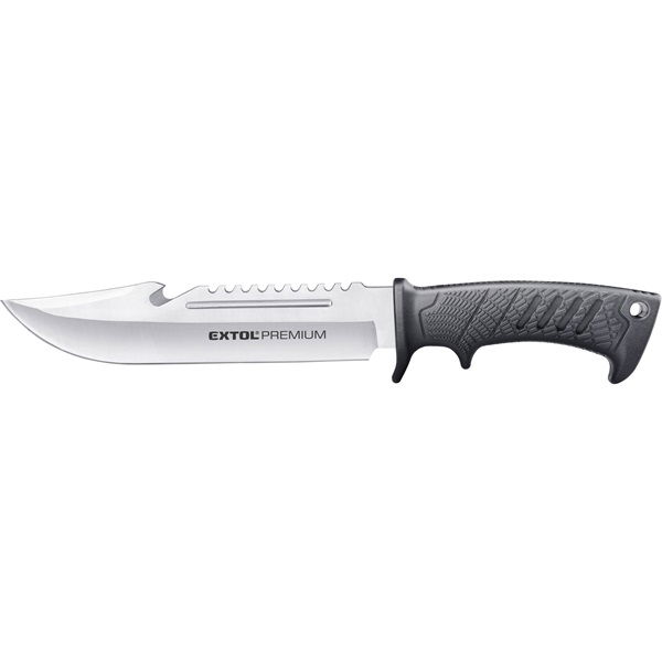 vadász- és túrakés, 3CR13 rozsdamentes acél penge, műanyag nyél, nylon tok, teljes/penge hossz: 318mm/193mm
