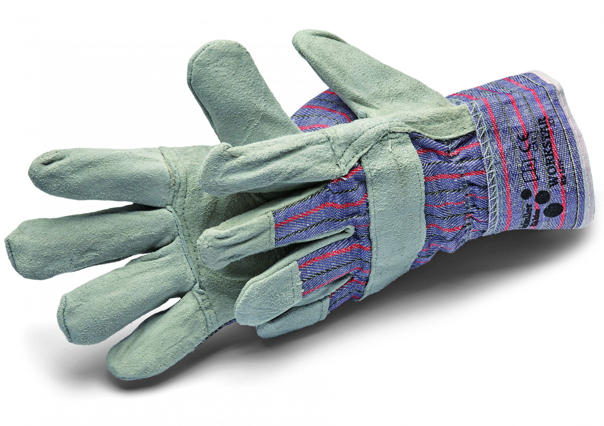 - Munkavédelmi kesztyű nyers marhabőrből, csíkos pamutbetéttel.